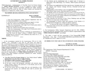 ఏపీలో మహిళలకు ఉచిత బస్సు స్త్రీ శక్తి పథకం జీవో జారీ చేసిన ప్రభుత్వం