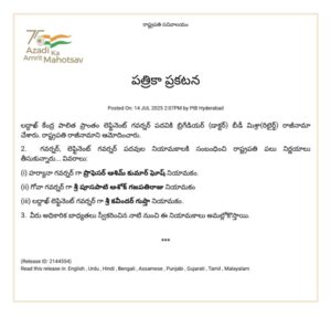 గోవా, లడఖ్, హర్యానా మూడు రాష్ట్రాలకు గవర్నర్లు నియామకం