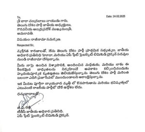 రాజీనామా చేస్తున్నట్టు సీఎం చంద్రబాబుకు లేఖ