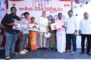 - మంగళగిరిలో నిర్వహించిన జాతీయ చేనేత దినోత్సవ వేడుకల్లో సీఎం చంద్రబాబుతో కలిసి పాల్గొన్న మంత్రి లోకేష్