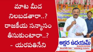 మాట మీద నిలబడతారా..? రాజకీయ సన్యాసం తీసుకుంటారా..? అంటూ గురజాల శాసన సభ్యులు యరపతినేని శ్రీనివాసరావు తన ప్రత్యర్థి, గురజాల మాజీ ఎమ్మెల్యే కాసు మహేష్ రెడ్డికి సూటి ప్రశ్న సంధించారు. పల్నాడు జిల్లా పిడుగురాళ్ళ పట్టణ తెలుగుదేశం పార్టీ కార్యాలయంలో మంగళవారం మీడియాతో మాట్లాడుతూ యరపతినేని ఈ వ్యాఖ్యలు చేశారు. ఎన్నికల సమయంలో తమ మధ్య సవాళ్లు, ప్రతి సవాళ్లు కొనసాగాయని అన్నారు. ఆ సమయంలో ఎన్నికల్లో తాను ఓడిపోయిన పక్షంలో తాను.. కాసు మహేష్ రెడ్డి ఓడిపోయిన పక్షంలో ఆయన రాజకీయ సన్యాసం తీసుకుంటానని ఛాలెంజ్ విసురు కోవడం అందరికీ తెలిసిందే అని చెప్పారు.